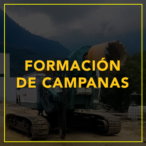 Perforación por medio de aditamento, el bote campana sirve para ampliar la base inferior de la perforacion y así aumentar su capacidad de carga.